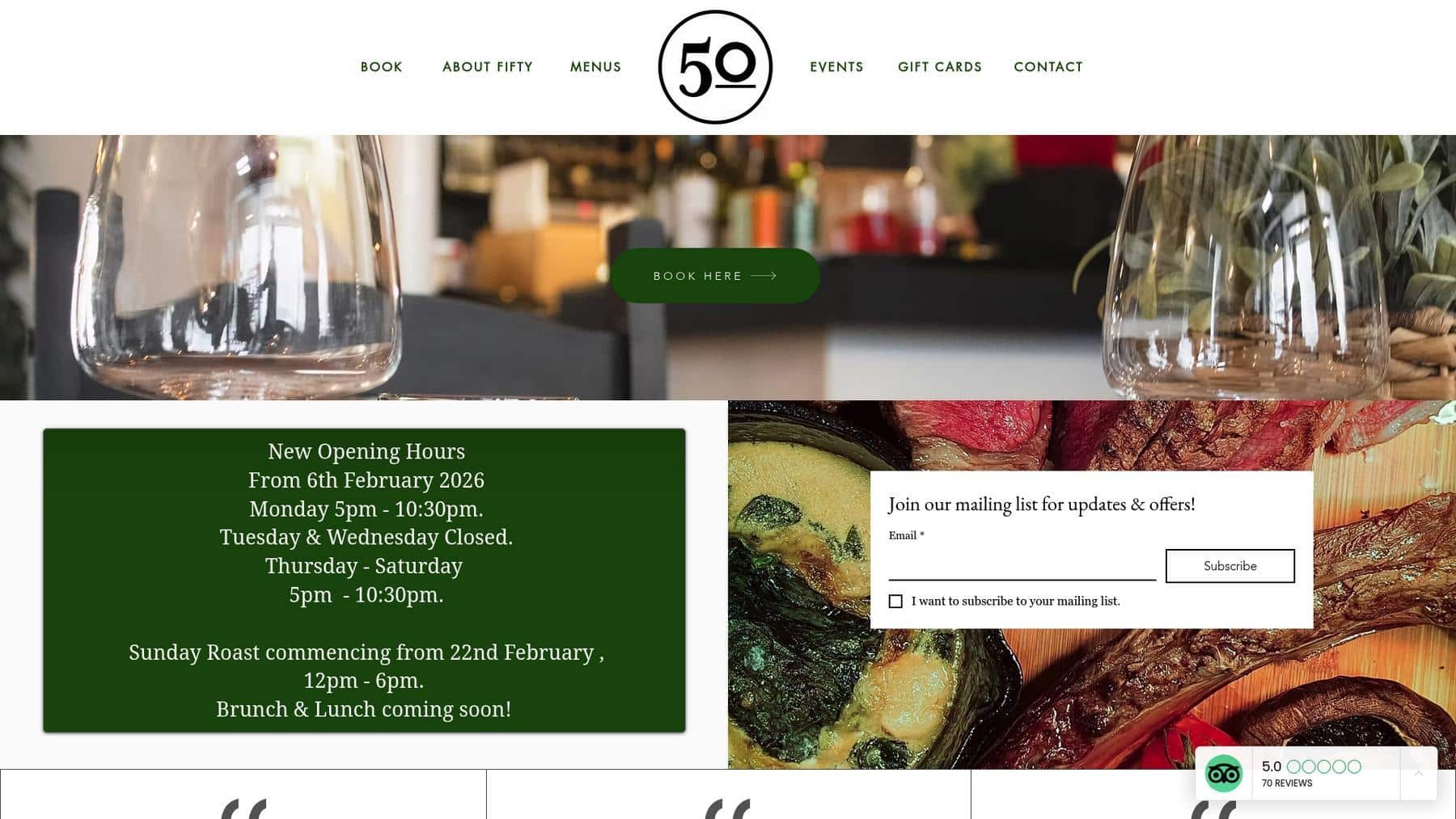 The place suits grown-ups looking for good food and good times in an intimate space, as they only welcome guests aged 12 and above and have a relaxed yet smart casual dress code. They prefer to keep the atmosphere calm and comfortable, so no highchairs or pushchairs, but well-behaved dogs are welcome by prior arrangement. With a warm, personal touch and a focus on making every visit feel special, Fifty is ideal for those who appreciate great food, friendly service, and a lively, yet laid-back vibe. It’s the kind of spot you come away from feeling both full and content, and already looking forward to your next visit.