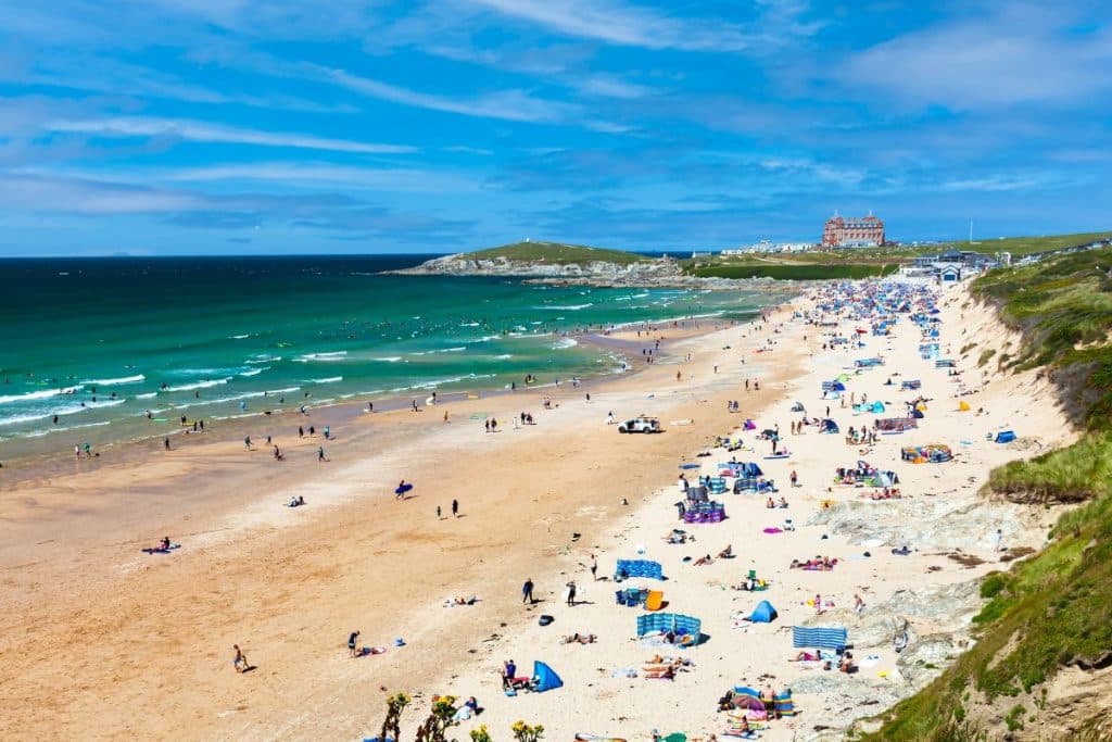 Fistral Beach is one of Cornwall’s most iconic and beloved stretches of sand. Located in Newquay, this wide golden beach is known as the home of British surfing. At nearly a mile long and a mile wide at low tide, Fistral offers plenty of space for families, sunbathers and water sports enthusiasts alike. The beach is backed by sand dunes and overlooks the dramatic Towan headland, creating a picturesque setting. During summer, lifeguards patrol the beach daily from April to October, providing reassurance for swimmers and surfers tackling the powerful waves.