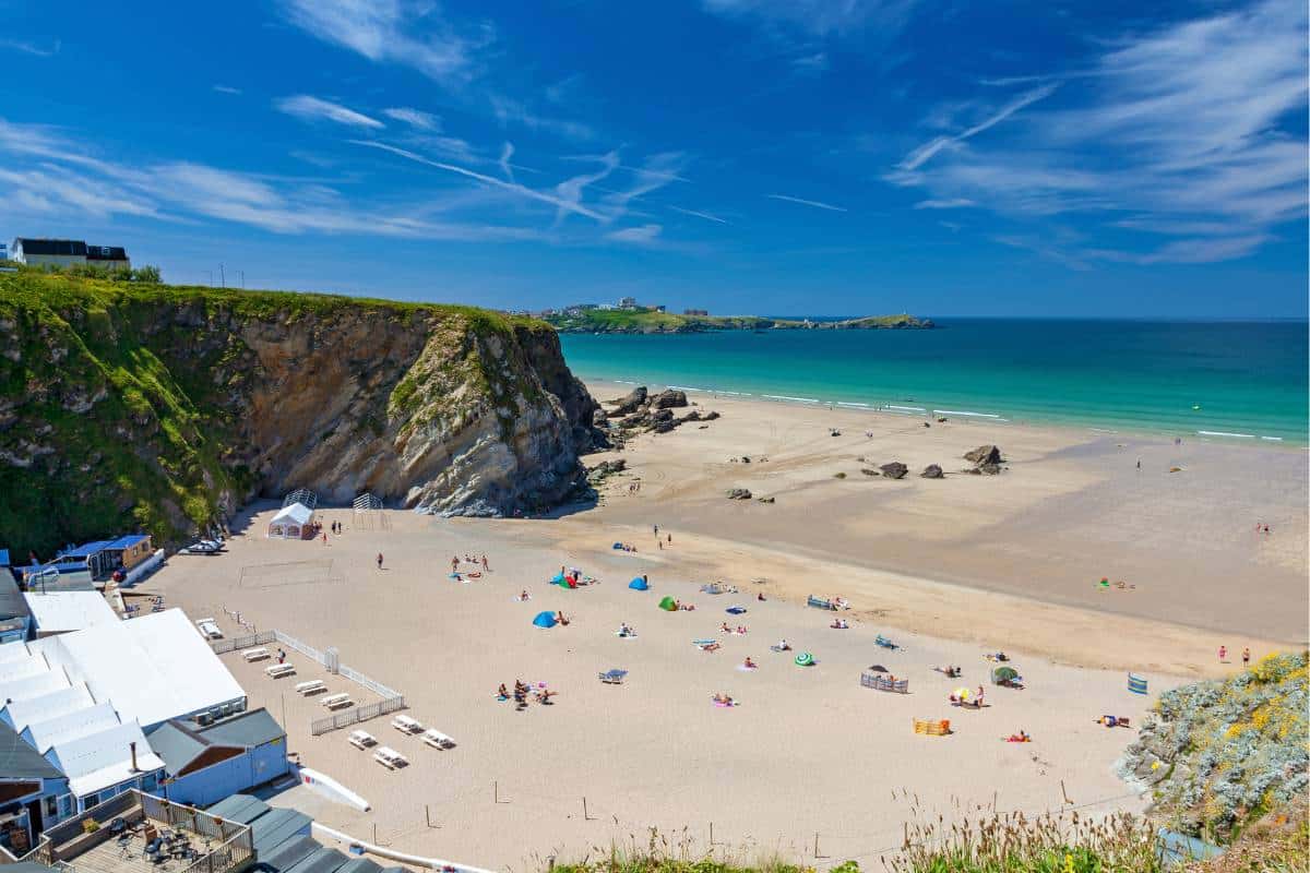 Facilities at Lusty Glaze are excellent for a smaller beach. There’s a beachside restaurant and bar with a sunny terrace offering panoramic sea views – perfect for a sunset drink or meal after a day on the sand. A beach shop provides essentials and rentals. In summer, events like outdoor cinema screenings and live music create a vibrant atmosphere. While it can get busy on peak days, Lusty Glaze retains a more laid-back vibe than some of Newquay’s larger, more touristy beaches. Its beauty and facilities make it a favourite with both locals and visitors seeking a quieter slice of Cornish beach life.