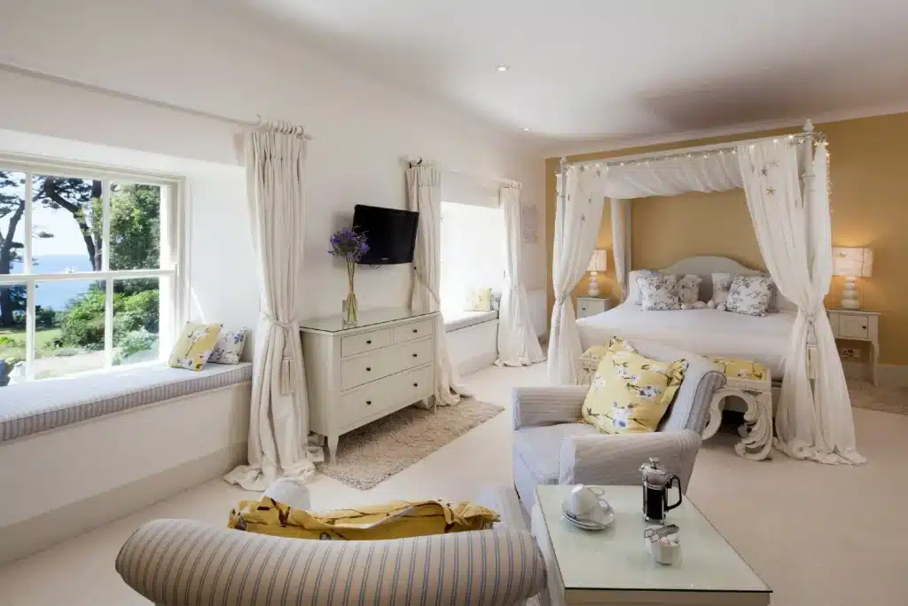 The Talland Bay Hotel boasts a stylish and contemporary design, with individually decorated rooms that offer a unique and comfortable stay. The hotel’s brasserie provides a relaxed and inviting atmosphere for casual dining, while the upscale restaurant offers a more formal setting for a special occasion. Guests can enjoy stunning views of the Cornish coastline from the hotel’s terrace, and the hotel’s facilities include a bar, a lounge, and a spa. The hotel’s location on the rugged Cornish coast makes it an ideal base for exploring the area’s many attractions, including the nearby fishing villages of Looe and Polperro.